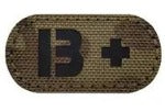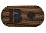 1"x2" Negative Laser Cut Coyote Brown Tactical Blood Type Patch with hook backing
