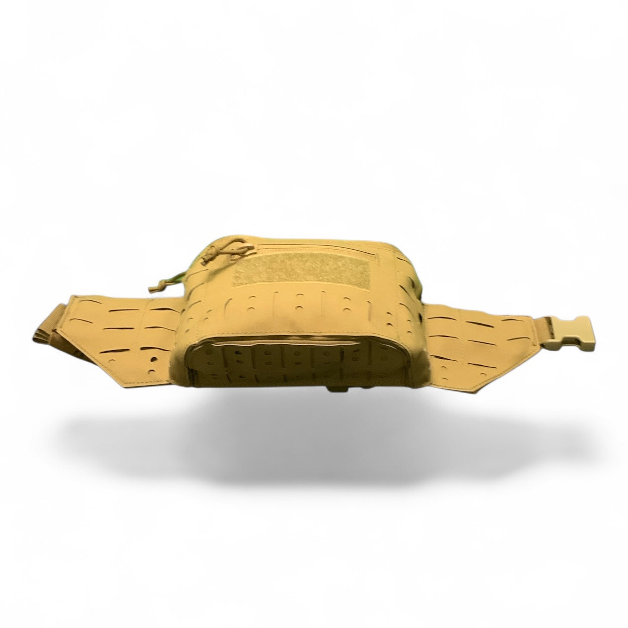 The Tactical Fanny Pack is expertly crafted for mission readiness, ideal as a medical IFAK kit, E&E gear, or to carry mission-specific essentials. Constructed from durable 500D laminate combined with robust nylon fabrics, it ensures long-lasting performance. Equipped with #10 zipper heads and single-pull operation, it offers secure and reliable access. The 2 x 3 laser-cut PALS panel on top accommodates chem lights or room markers, while 2 x 2 PALS webbing on both sides of the base and main pouch allows versatile attachment of extra mag or grenade pouches. Integrated holes enable shock cord or 550 cord use for tourniquets and other gear. A 2-inch loop on the front holds name tags or hook-backed patches. Inside, a flat pocket stores notepads or range cards, complemented by a full zipper front pouch for quick access to medical items. The back zipper extends fully, providing ample space for E&R or other mission-critical gear. Designed and manufactured in Oceanside, CA, this fanny pack comes with a lifetime warranty, reflecting its quality and reliability for operators in demanding environments.